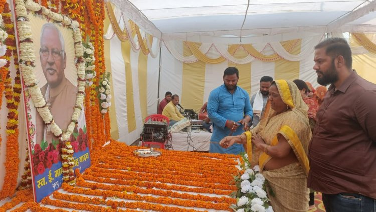 ईस मौके पर स्व मातवर सिंह यादव की पत्नी मिना देवी के द्वारा दिप प्रज्वलित व पुष्प अर्पित कर कार्यक्रम को प्रारंभ किया गया। पुर्व प्रमुख प्रवीण यादव ने कहा हम आज जो भी कुछ है वह पिता और माता जी की देन है मां बाप जन्म देते है तमाम कठिनाइयों के सहन करने के बाद भी अपने औलाद को हमेसा दुःख से दुर रखने व अच्छी शिक्षा देने का प्रयत्न करते है इसे याद करते हुए सभी लोगों यह कोशिश करना चाहिए कि अपने माता पिता के सम्मान मे जीवन से लेकर मृत्यु के बाद भी कोई कमी ना रह जाए।