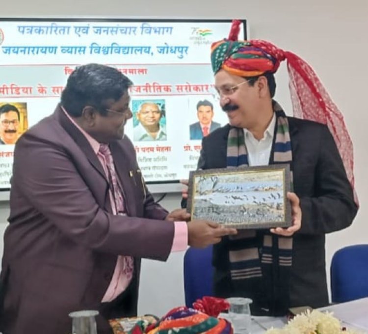 जोधपुर। "स्किल डेवलपमेंट से समाज आत्मनिर्भर बनता है। भारत की कौशल के क्षेत्र में गौरवमयी परंपरा रही है। यहां के लोगों ने अपनी संस्कृति एवं हुनर से विश्व को चमत्कृत किया है।" यह विचार भारतीय जन संचार संस्थान के महानिदेशक प्रो. (डॉ.) संजय द्विवेदी ने जय नारायण व्यास विश्वविद्यालय, जोधपुर के पत्रकारिता एवं जनसंचार विभाग द्वारा आयोजित व्याख्यानमाला को संबोधित करते हुए व्यक्त किए।