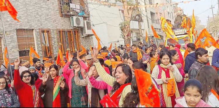 नोएडा। अयोध्या धाम में 500 वर्षों की प्रतीक्षा के बाद प्रभु श्री राम लला के मन्दिर निर्माण एवं प्राण प्रतिष्ठा के उपलक्ष्य पर सेक्टर 19 के सभी सेक्टर निवासी राम भक्तों द्वारा श्री राम शोभा यात्रा निकाली। यह शोभा यात्रा सी ब्लॉक सनातन धर्म मंदिर से राम भक्तों ने निकाली, यात्रा का स्वागत उत्तर प्रदेश उद्योग व्यापार संगठन के जिला अध्यक्ष एव अग्रवाल मित्र मंडल के पूर्व अध्यक्ष संजय गोयल के निवास पर किया गया।