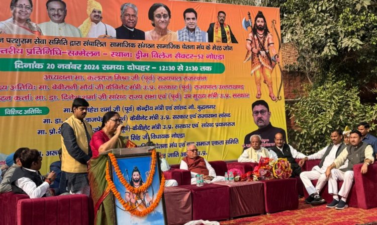 नोएडा। भगवान परशुराम सेवा समिति द्वारा ड्रीम विलेज सेक्टर 52, नोएडा में अपने द्वारा संचालित सामाजिक संगठन सामाजिक चेतना मंच का मेरठ जोन स्तरीय प्रतिनिधि सम्मेलन का आयोजन किया गया,जिसके संयोजक संगठन के राष्ट्रीय मुख्य महासचिव कुंवर अमितराज दीक्षित एवं आयोजक प्रदेश उपाध्यक्ष प्रभारी मेरठ जोन पंडित राजेंद्र शर्मा हैं, सम्मेलन की अध्यक्षता यूपी एवं भारत सरकार के पूर्व मंत्री एवं हिमाचल तथा राजस्थान के पूर्व राज्यपाल कलराज मिश्र द्वारा की गई।