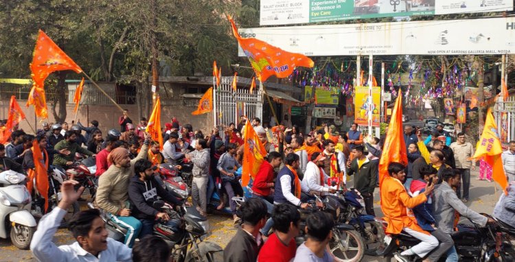 नोएडा। विश्व हिन्दू परिषद, बजरंग दल द्वारा श्री राम लला की प्राण प्रतिष्ठा के उपलक्ष में नोएडा महानगर में जन-जागरण यात्रा निकाली गई। यात्रा प्रात: 11 बजे, नोएडा हाट सेक्टर 33 से प्रारंभ होकर निठारी, सेक्टर 18 अट्टा, सेक्टर 16, नया बांस- हरोला - चौड़ा मोड़ - 12-22 तिराहा - शिव मंदिर सेक्टर 22 - रजत विहार- बिसनपुरा - चोकी 57 - गिझोड़ - - नोएडा हाट सेक्टर 33 पर प्रसाद वितरण के बाद समाप्त हुई. इस यात्रा में श्री राम की झांकी का रथ, संगीत यंत्रों द्वारा श्री राम के भजन और श्री राम का जय गान करते हुए भजन मंडली आकर्षण का केंद्र रहे।
